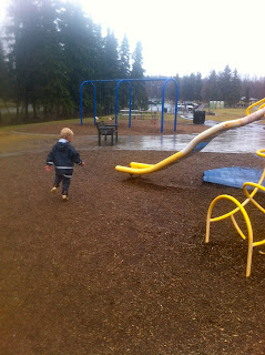 It is raining and snowing today and most Alaskans are disgusted, myself included. But not Van, who insisted we go to the park.